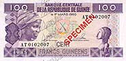 Emission : 100 GNF / 1998 pick number : gn 035a(1)