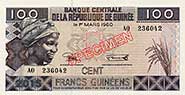 Emission : 100 GNF / 1985 pick number : gn 030a(1)