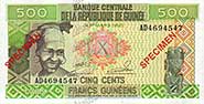 Emission : 500 GNF / 1998 pick number : gn 036(1)