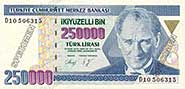 Emission : 250000 (Old) Lira (0.25 TRY) / 1992, 1995 pick number : tr 207(2)