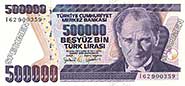 Emission : 500000 (Old) Lira (0.50 TRY) / 1997 pick number : tr 212(1)