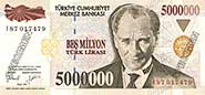 Emission : 5000000 (Old) Lira (5.00 TRY) / 1997 pick number : tr 210b
